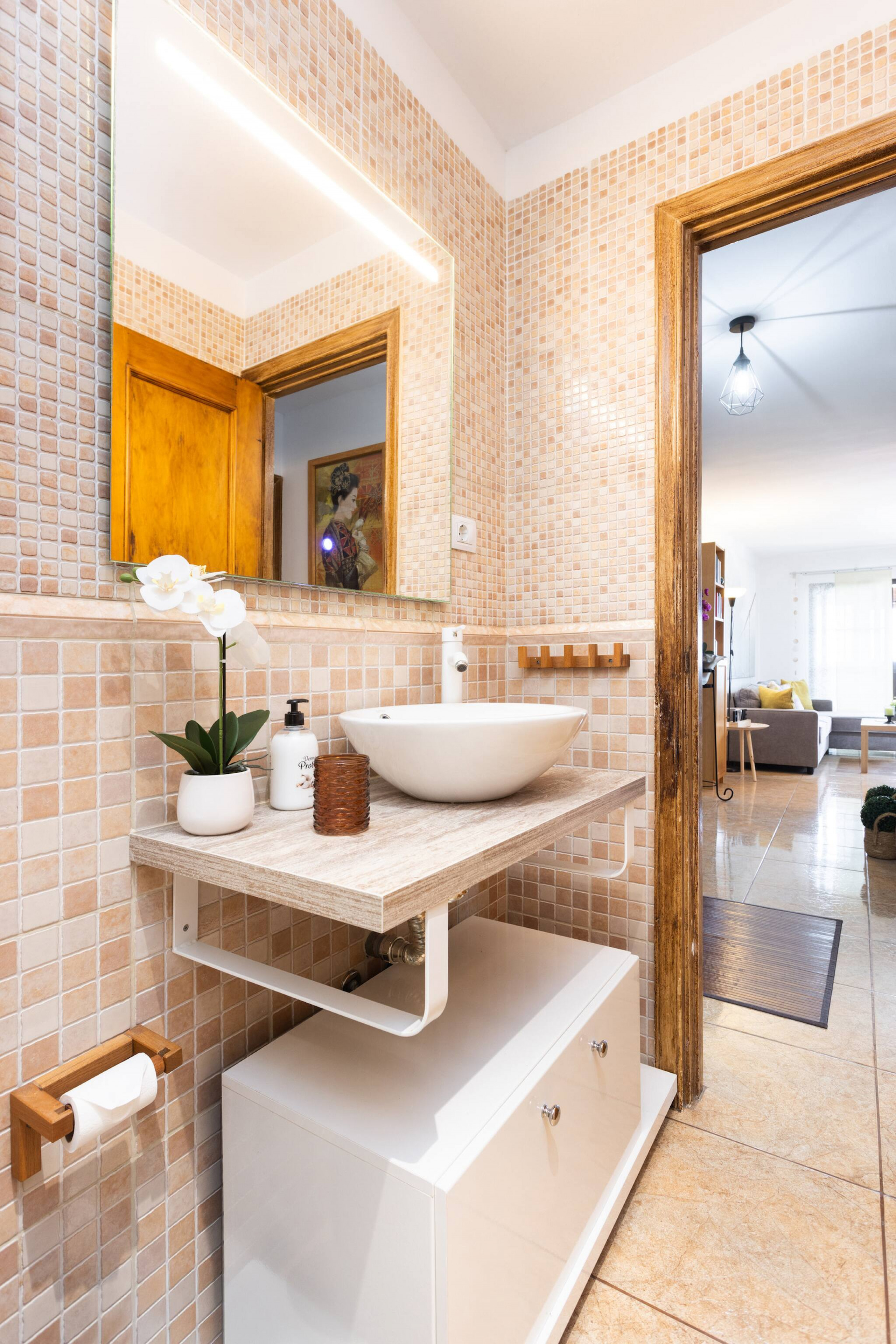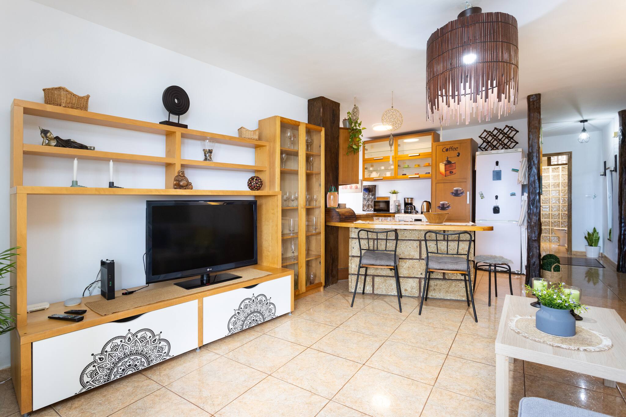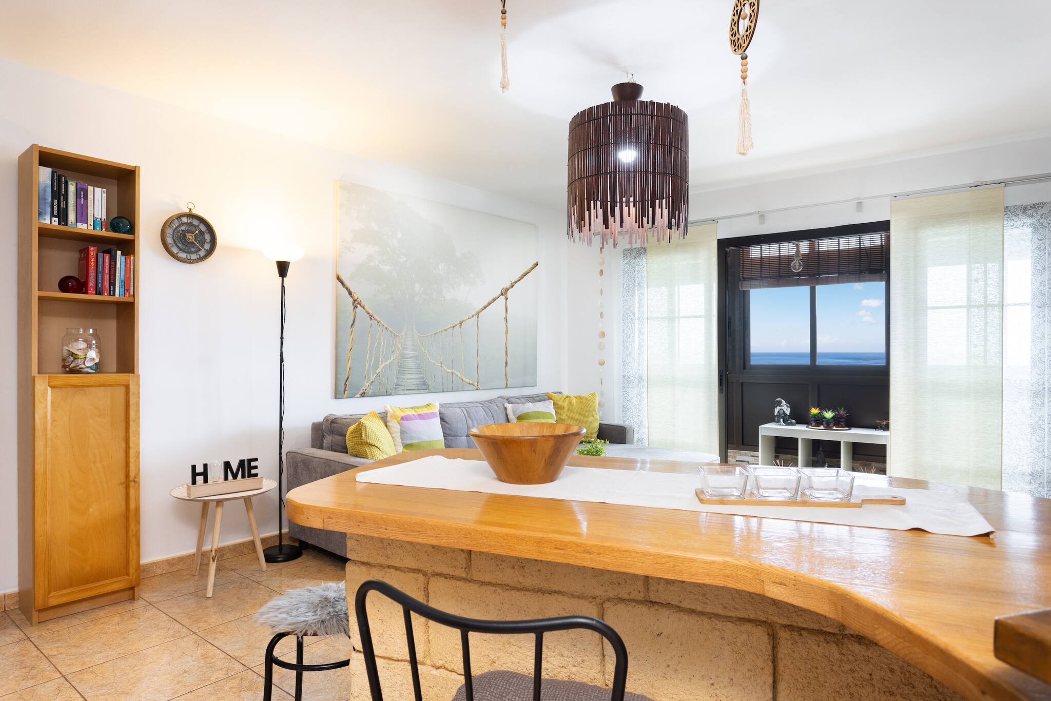 Su gran ventanal panorámico convierte el salón en un mirador privado, el rincón favorito de quienes buscan relajarse contemplando el horizonte. La luz natural inunda cada espacio, creando un ambiente cálido y acogedor, perfecto para descansar tras un día de playa o de aventuras por la isla.