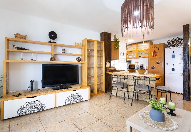 Este alojamiento tipo estudio, recién reformado, cuenta con cocina, salón, habitación y terraza totalmente diáfanos y baño independiente. Es un apartamento muy luminoso con vistas al mar y la piscina natural que lo preside. En la zona hay un pequeño supermercado y un restaurante de pescado fresco y comida típica canaria. Además hay un precioso paseo junto a la playa a la izquierda y a la derecha otro bonito paseo por la montaña que conecta con el pueblo de al lado, también con piscina natural y varios restaurantes y tiendas.
